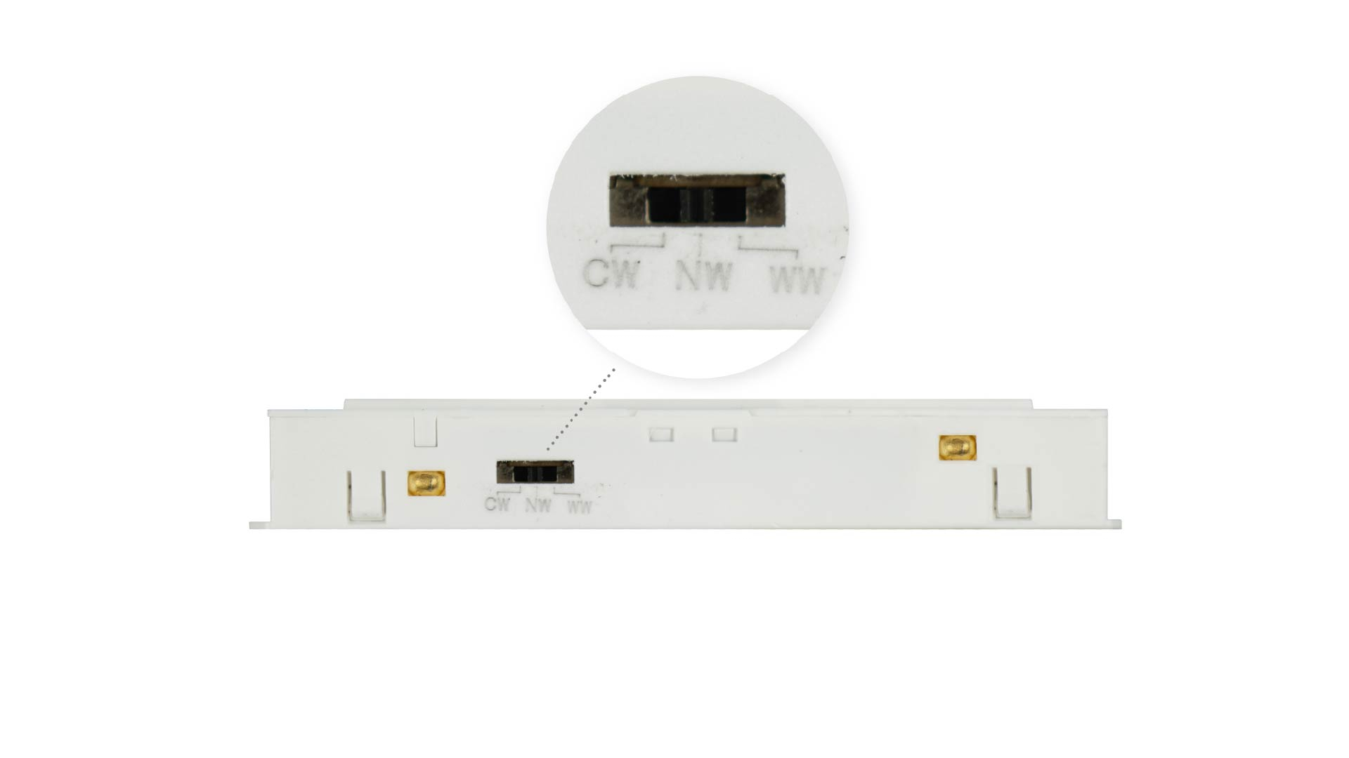 LUMINES GENESIS CCT luminaires feature a built-in DIP-SWITCH that allows quick adjustment of the light color temperature: 3000 K, 4000 K, or 6500 K.