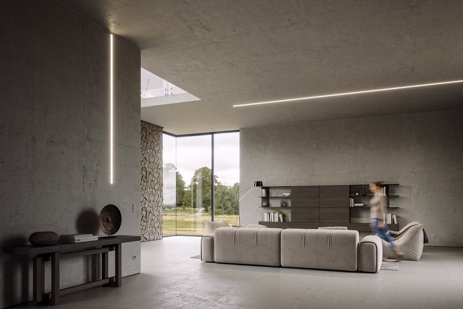 The system is designed for a single LED strip. Thanks to a specially developed LIFT ONE cover, the cover surface can be precisely aligned with plaster layers of various thicknesses, while its construction facilitates easy service access to the light source.