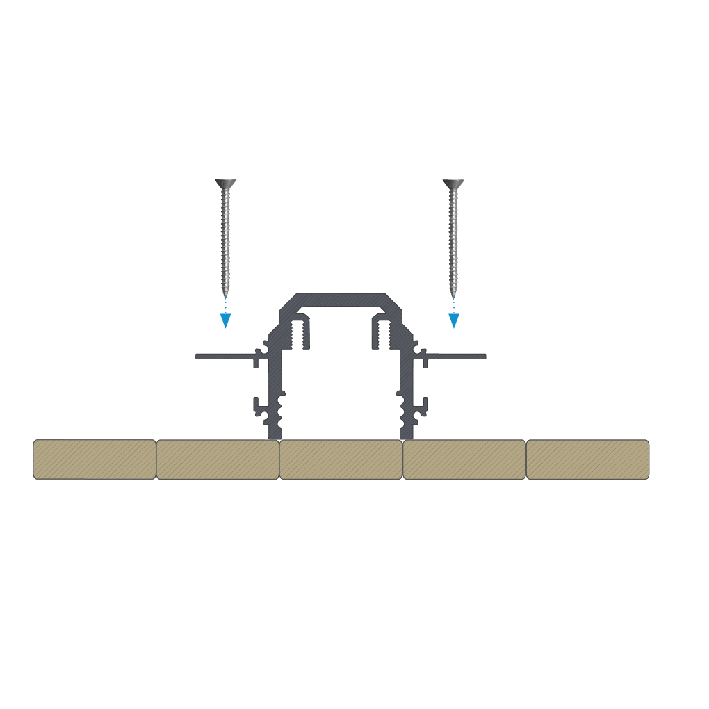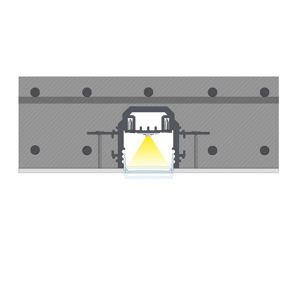 The effect of mounting DURO LED profile in concrete formwork using screws after reinforcement installation and concrete pouring.