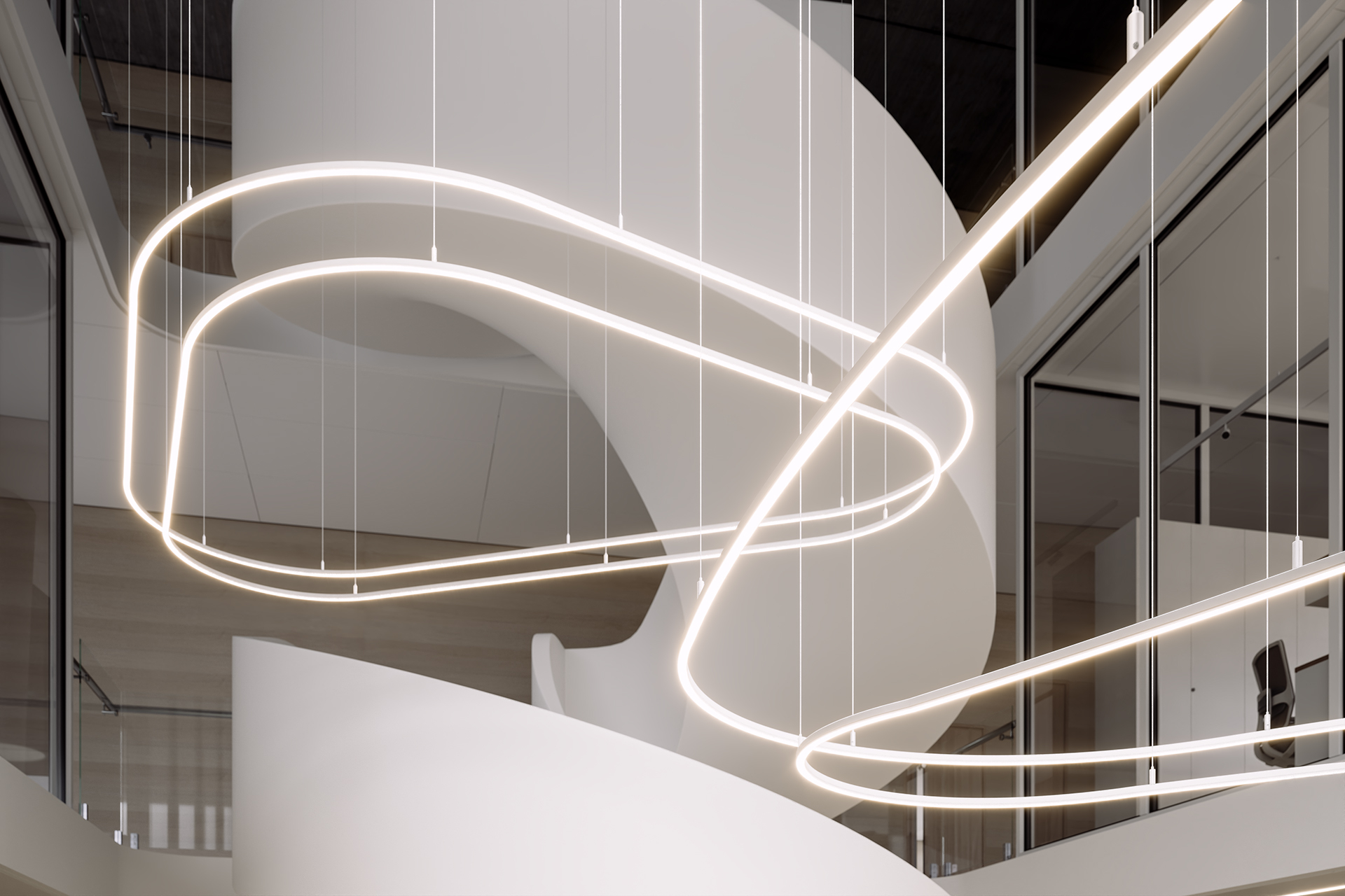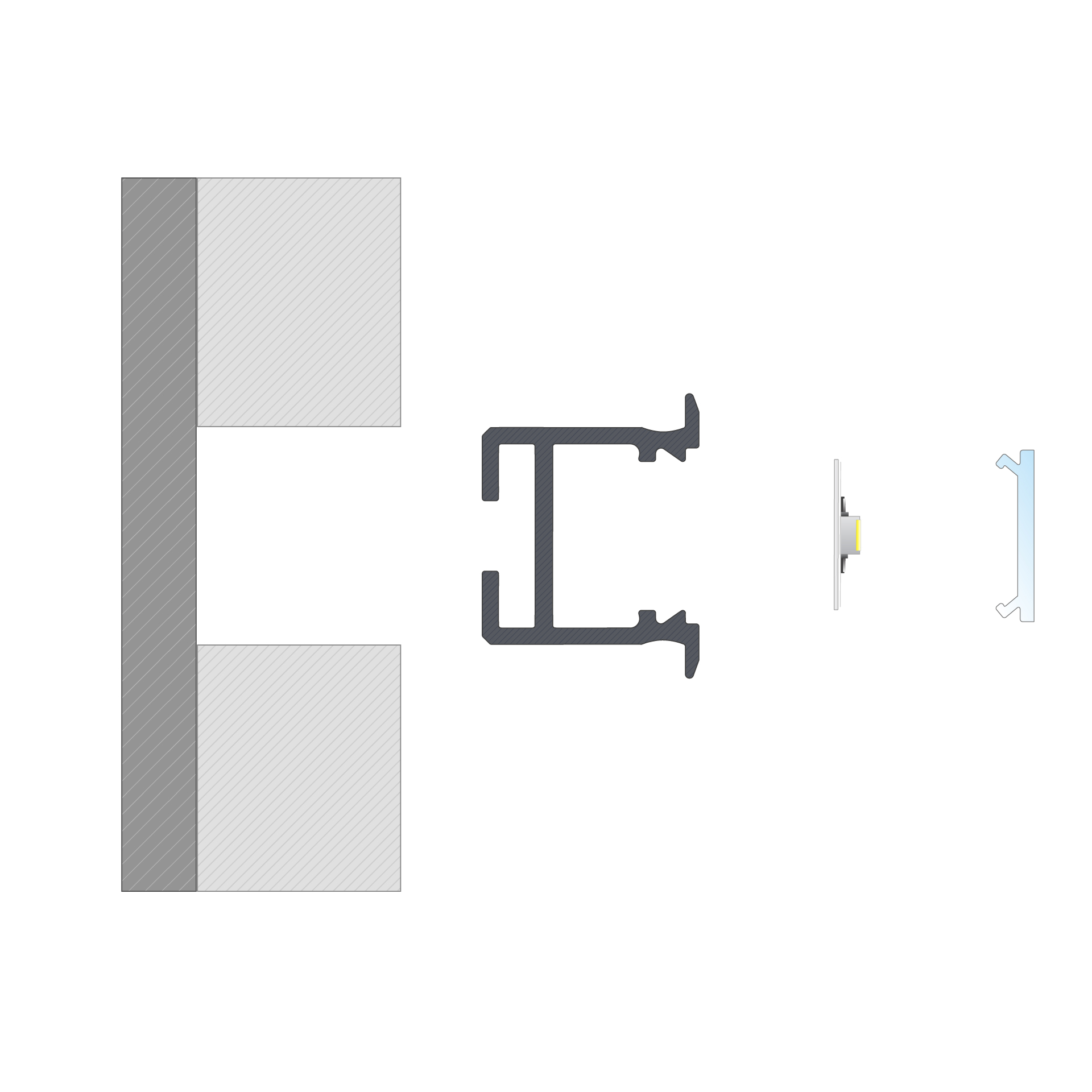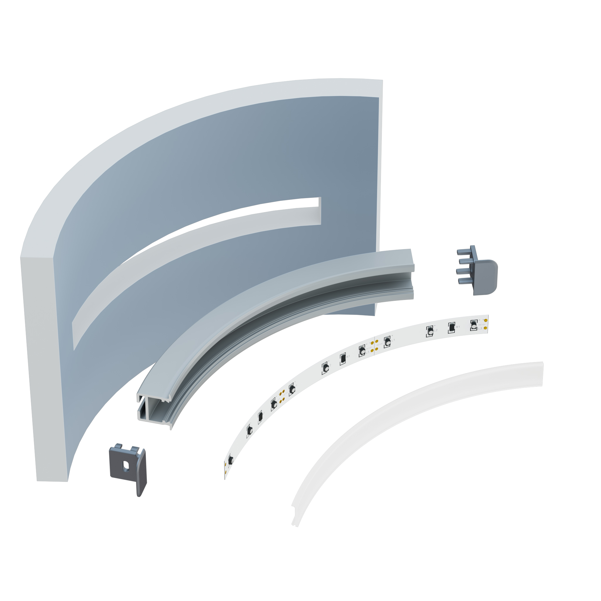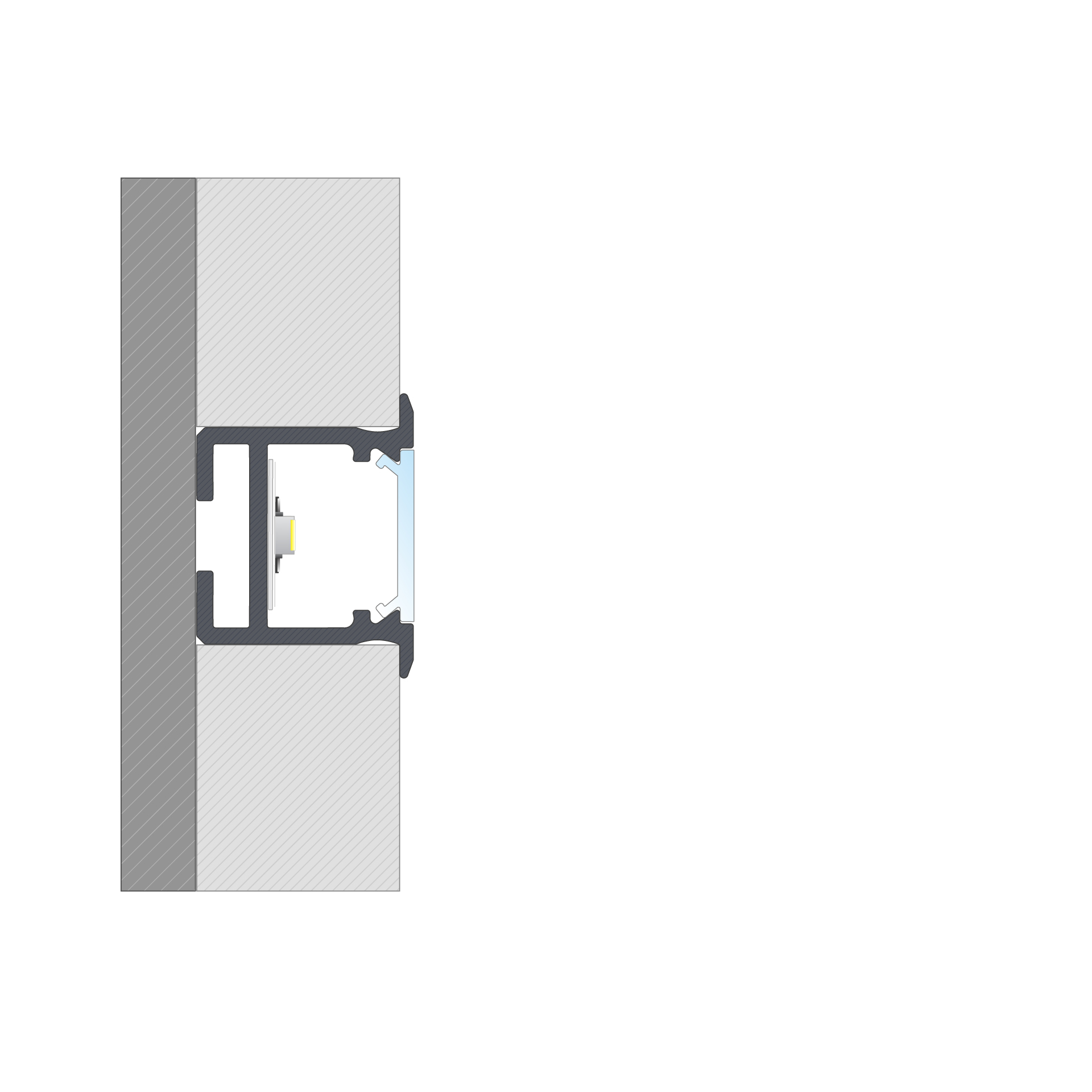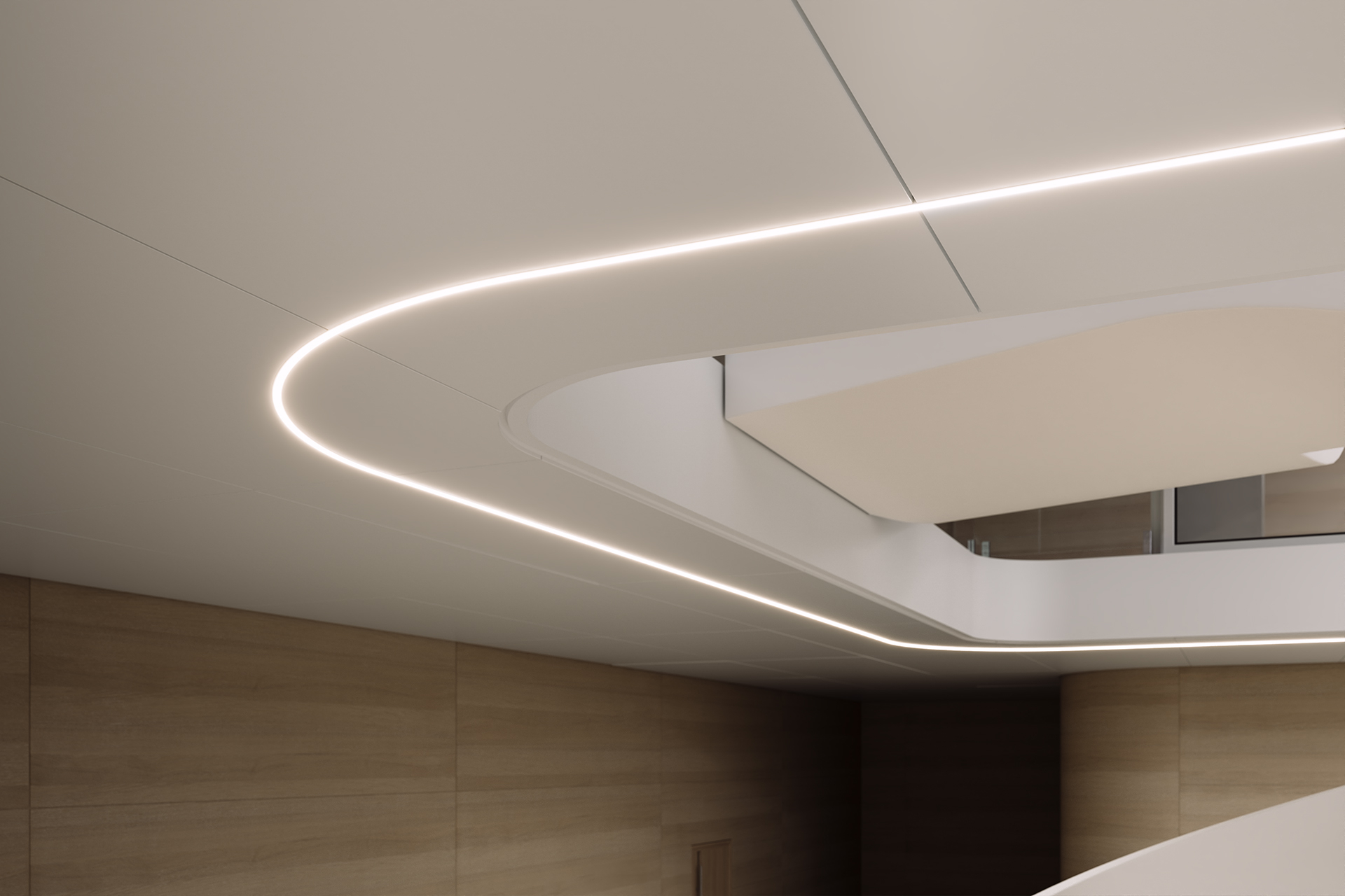 Recessed version of the FLEXA system. It allows you to create smooth, continuous lines of light, flush with the surface of the ceiling or wall, including curved sections. The system supports connectors, allowing you to create complex Lighting arrangements, and works particularly well in light arches in walls and on columns.