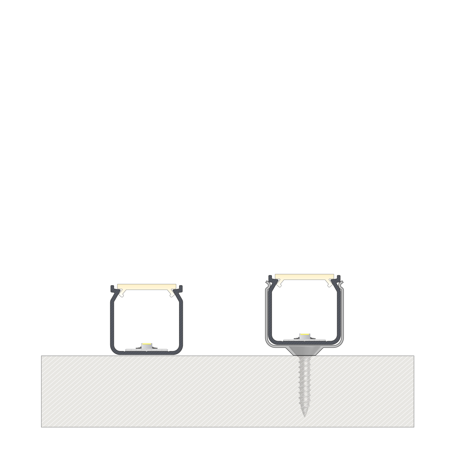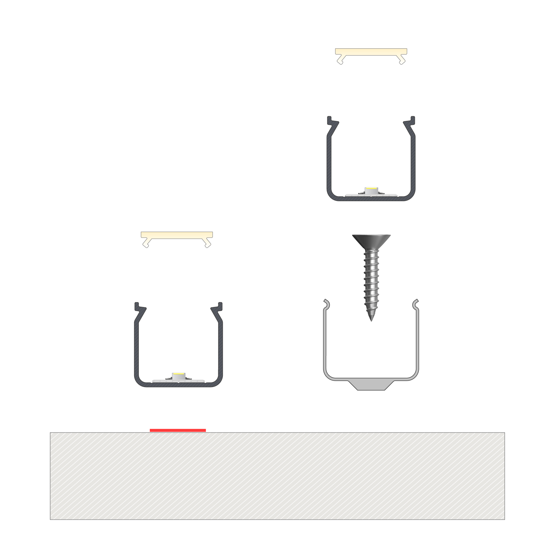 LED surface profile for use in office and home spaces. Designed to create decorative lighting in furniture and interior finishes.