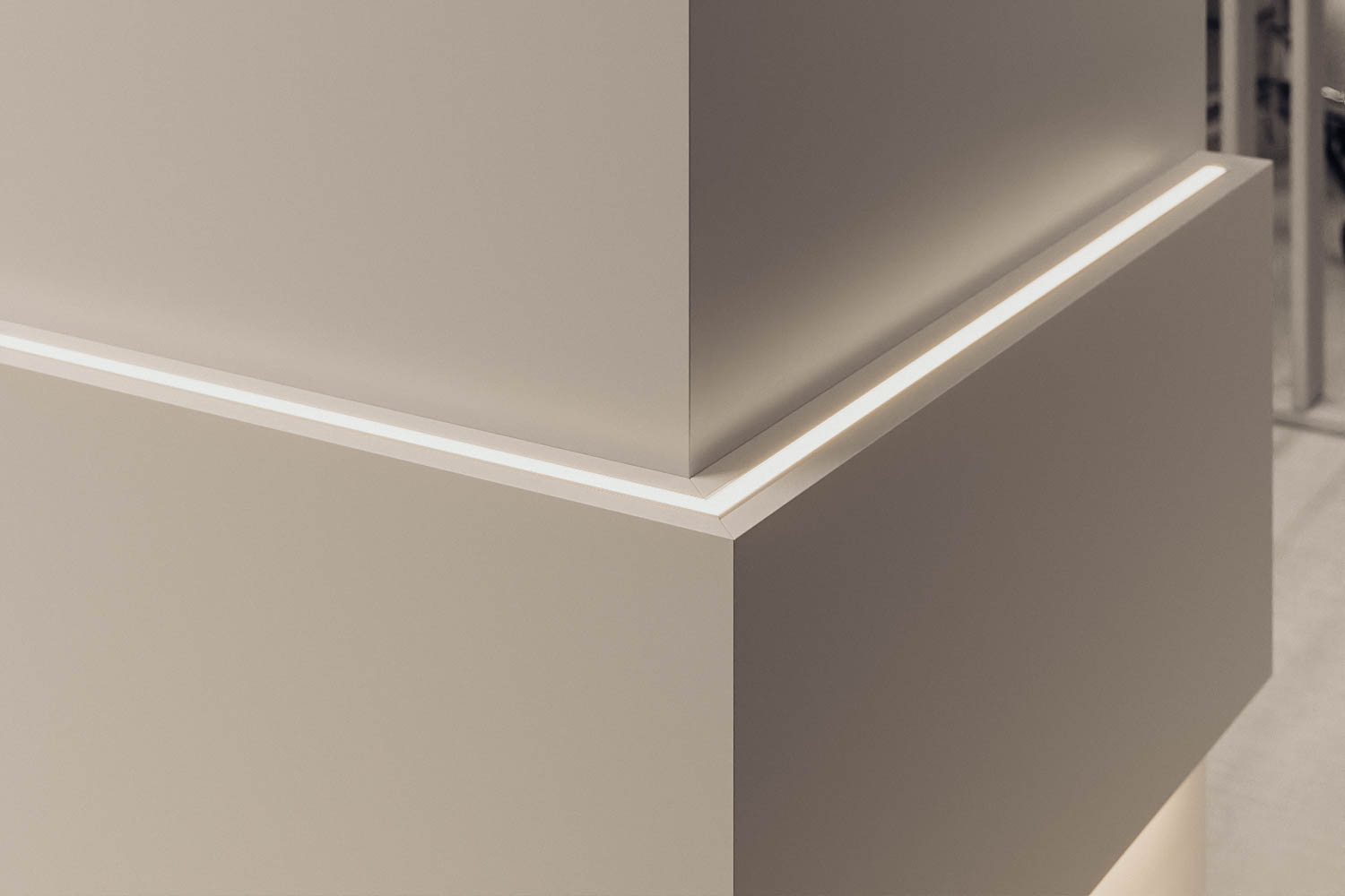 Recessed LED profile for use in kitchens and display areas. Used to illuminate cabinets, countertops and other work surfaces.