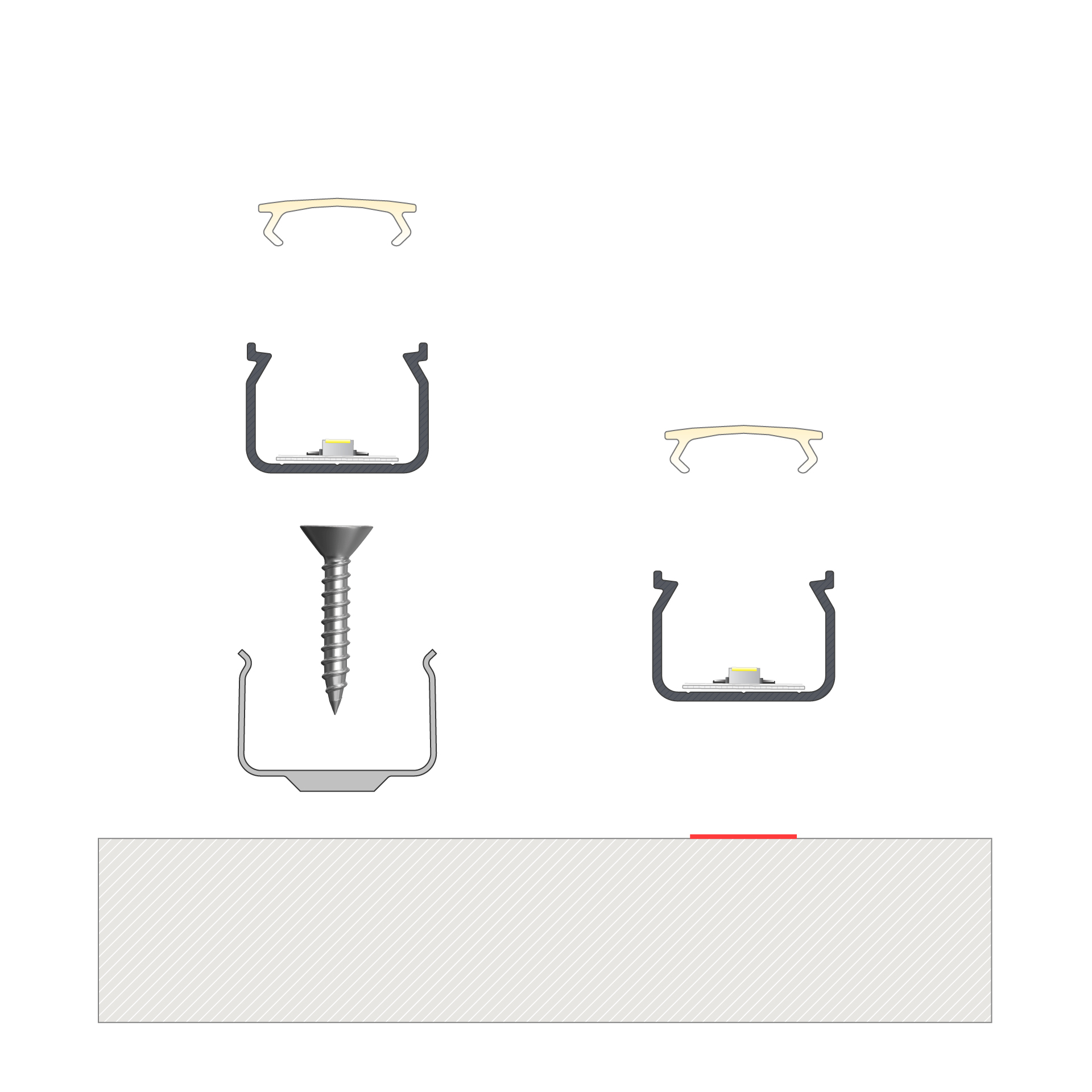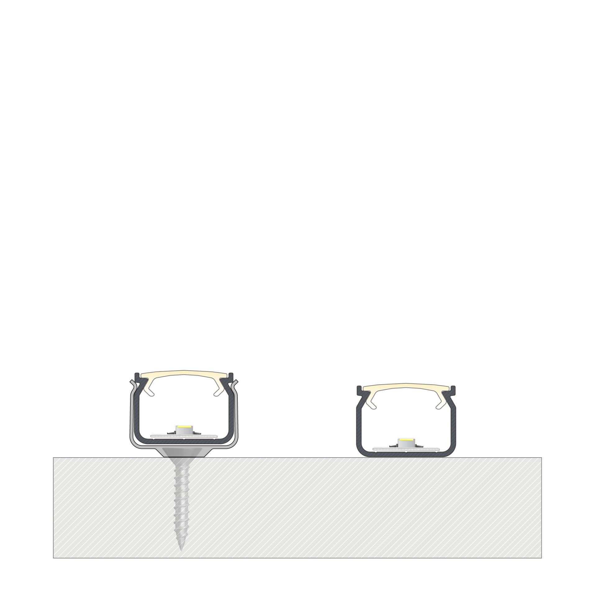 LED surface profile for use in office and home spaces. Designed to create decorative lighting in furniture and interior finishes.