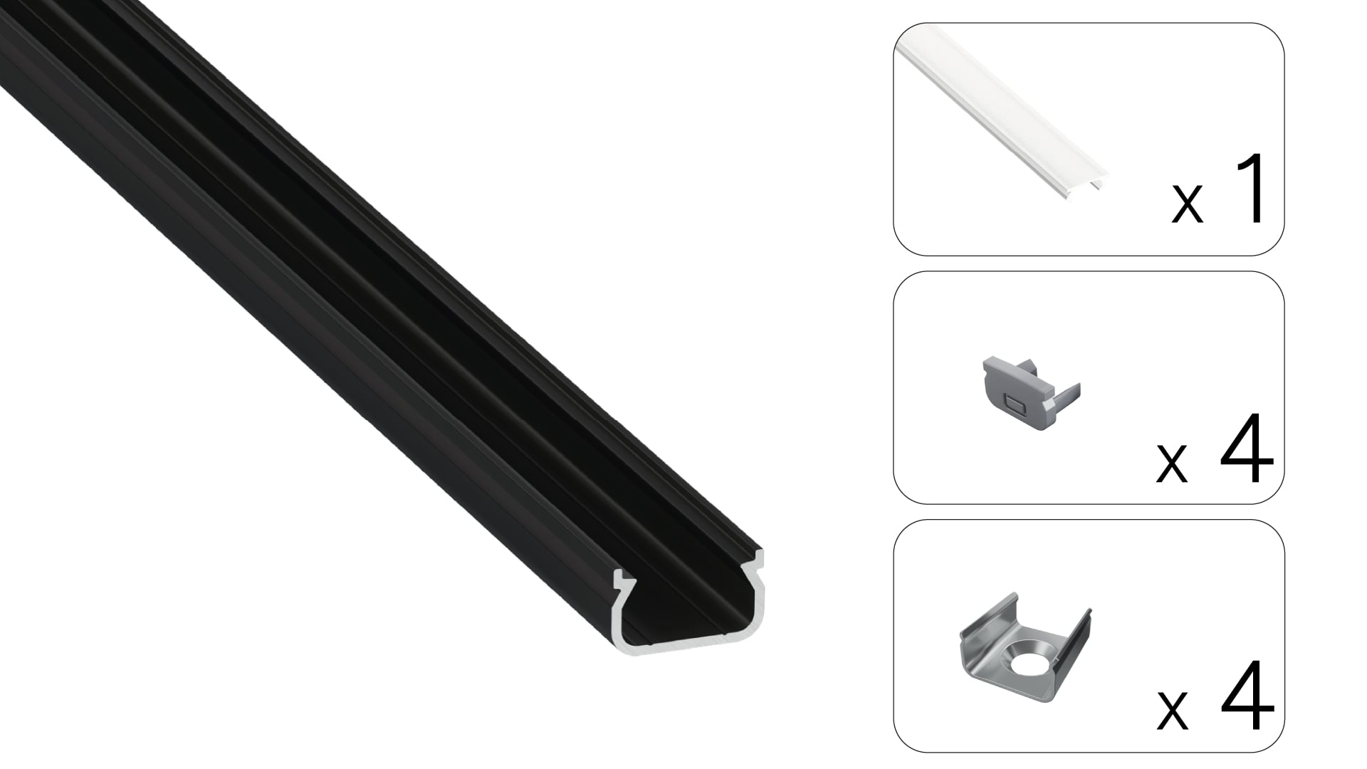 Set contains: 1 x IKKE LED profile, 1 x S10 LED cover, 4 x IKKE End cap, 4 x IKKE Mounting clip