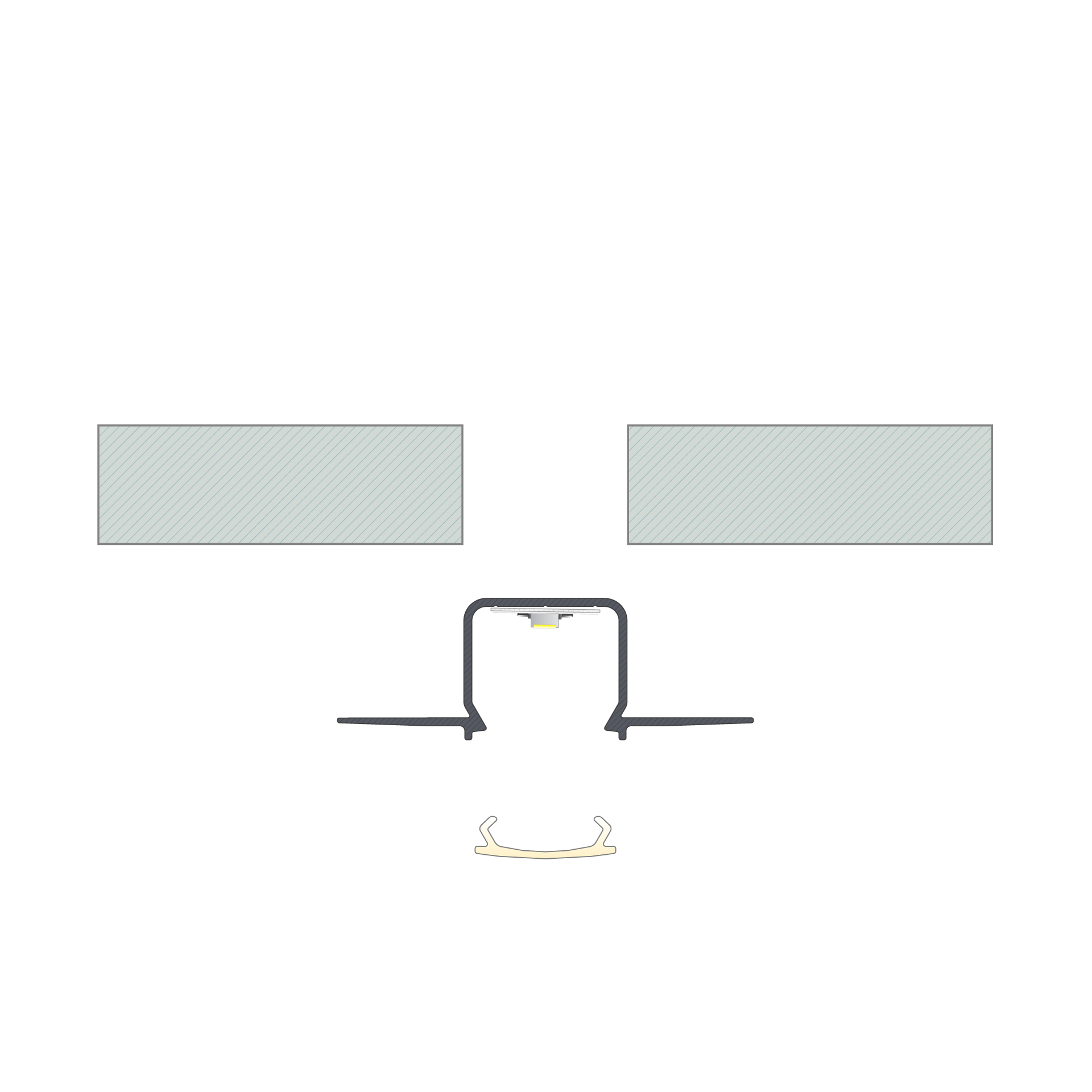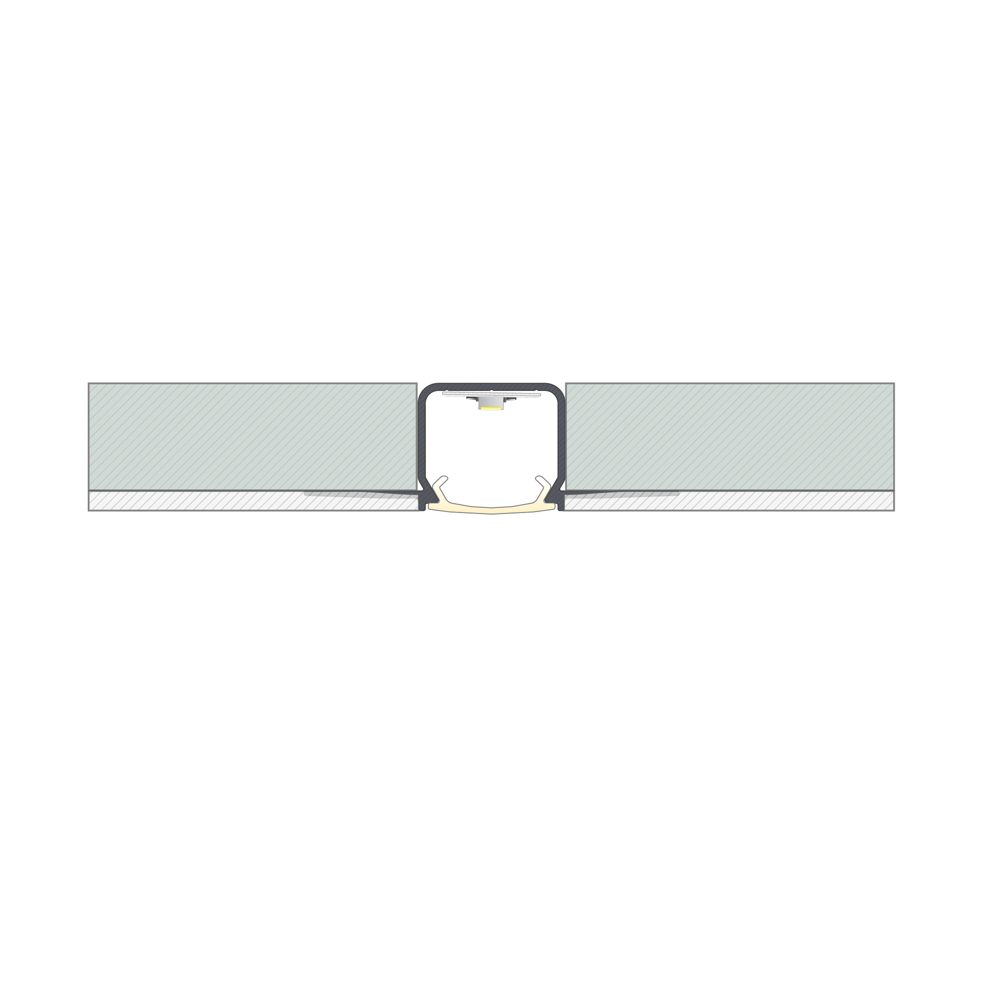 Single strip LED profile for installation in plasterboard. The smoothing compound penetrates through the perforations in the flanges, which ensures fast, trouble-free and durable installation.