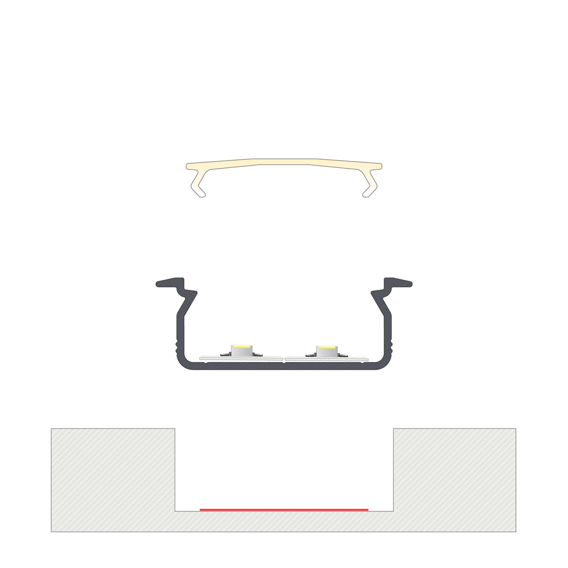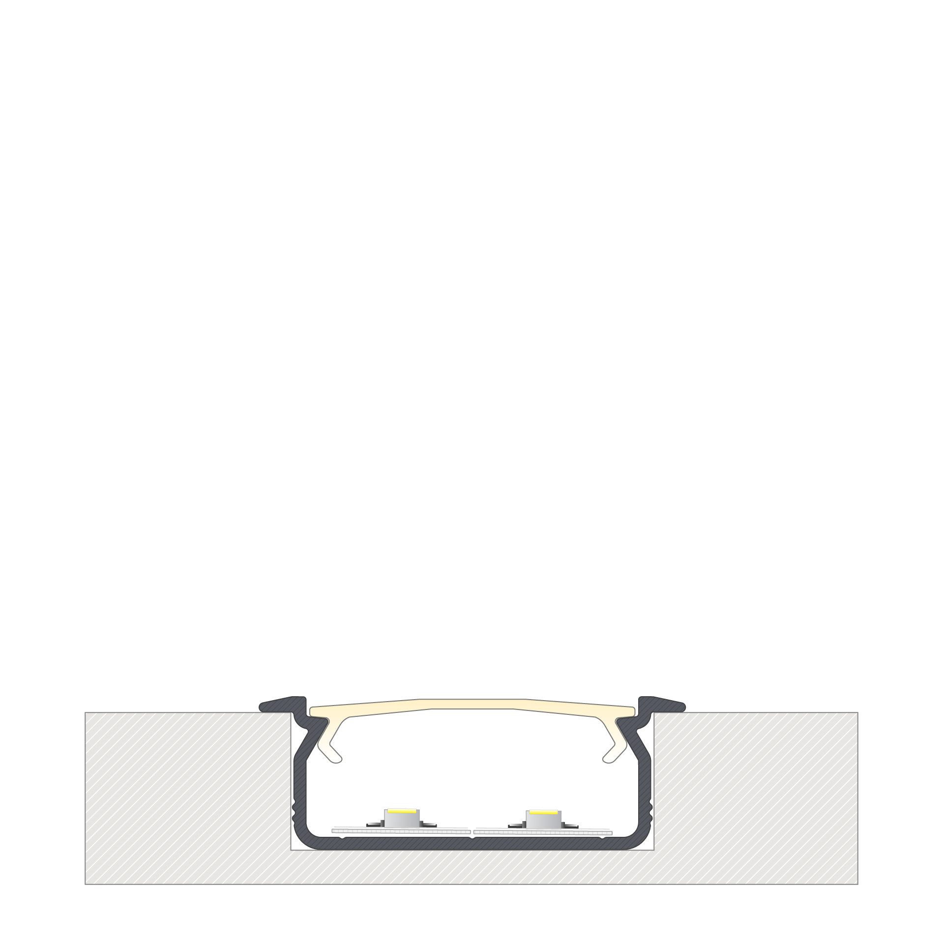 Wide LED profile for mounting in milled holes. Designed for the installation of two parallel LED strips.